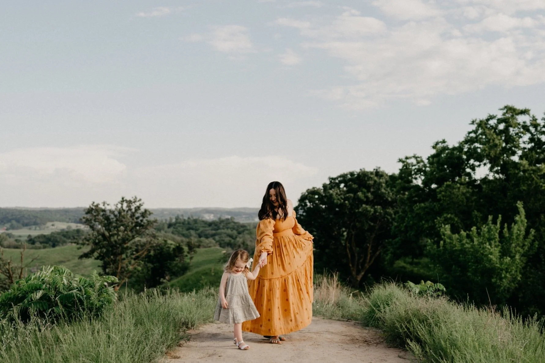 Long dresses, skirts, and jumpsuits add a bold but natural vibe for mama and look good on everyone! These work in outdoor locations as well as inside.